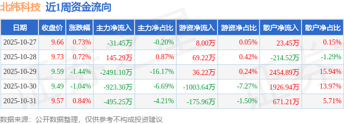 资金流向数据方面,本周北纬科技主力资金合计净流出3795.81万元,游资资金合计净流出1066.16万元,散户资金合计净流入4861.97万元。本周资金流向一览见下表: