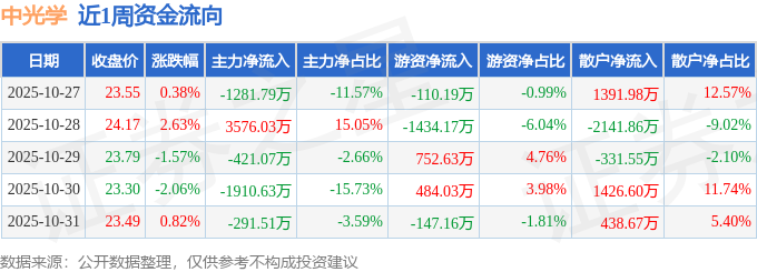 资金流向数据方面,本周中光学主力资金合计净流出328.98万元,游资资金合计净流出454.86万元,散户资金合计净流入783.84万元。本周资金流向一览见下表: