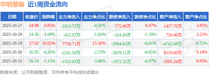 沪深股通持股方面,截止2025年10月31日收盘,华明装备深股通持股数为1.21亿股,占流通股比为1587.0%。