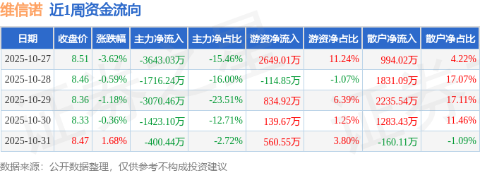 资金流向数据方面,本周维信诺主力资金合计净流出1.03亿元,游资资金合计净流入4069.32万元,散户资金合计净流入6183.96万元。本周资金流向一览见下表: