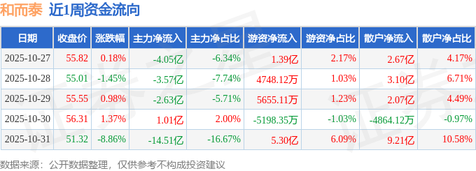 资金流向数据方面,本周和而泰主力资金合计净流出23.77亿元,游资资金合计净流入7.21亿元,散户资金合计净流入16.56亿元。本周资金流向一览见下表: