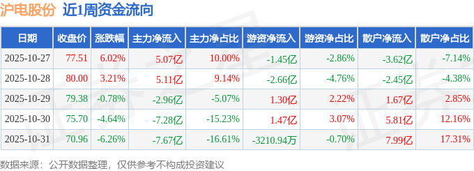 沪深股通持股方面,截止2025年10月31日收盘,沪电股份深股通持股数为8586.63万股,占流通股比为449.0%。