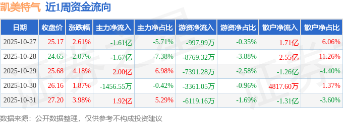 资金流向数据方面,本周凯美特气主力资金合计净流入4900.53万元,游资资金合计净流出2.66亿元,散户资金合计净流入2.17亿元。本周资金流向一览见下表: