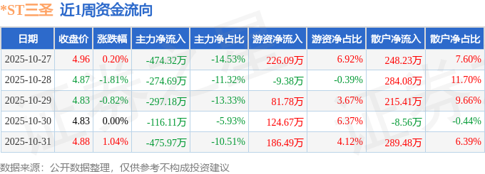 资金流向数据方面,本周*ST三圣主力资金合计净流出1638.28万元,游资资金合计净流入609.64万元,散户资金合计净流入1028.64万元。本周资金流向一览见下表: