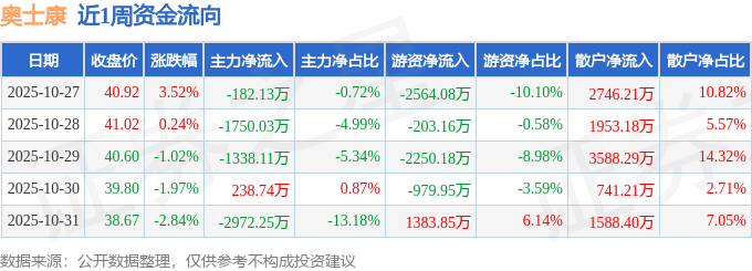 资金流向数据方面,本周奥士康主力资金合计净流出6003.79万元,游资资金合计净流出4613.52万元,散户资金合计净流入1.06亿元。本周资金流向一览见下表: