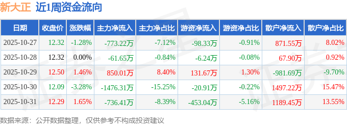 资金流向数据方面,本周新大正主力资金合计净流出2197.58万元,游资资金合计净流出446.85万元,散户资金合计净流入2644.43万元。本周资金流向一览见下表: