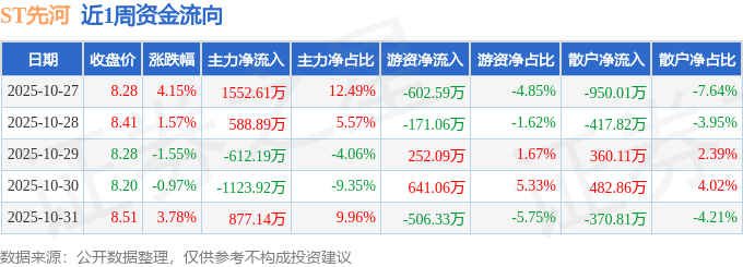 资金流向数据方面,本周ST先河主力资金合计净流入1282.51万元,游资资金合计净流出386.84万元,散户资金合计净流出895.67万元。本周资金流向一览见下表: