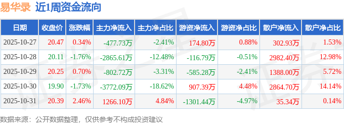 资金流向数据方面,本周易华录主力资金合计净流出6652.05万元,游资资金合计净流出921.32万元,散户资金合计净流入7573.36万元。本周资金流向一览见下表: