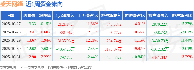 资金流向数据方面,本周盛天网络主力资金合计净流出35.22万元,游资资金合计净流入3766.61万元,散户资金合计净流出3731.4万元。本周资金流向一览见下表: