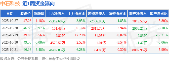 沪深股通持股方面,截止2025年10月31日收盘,中石科技深股通持股数为218.61万股,占流通股比为109.0%。