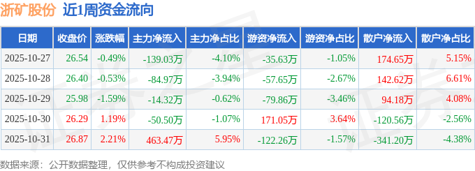 资金流向数据方面,本周浙矿股份主力资金合计净流入174.65万元,游资资金合计净流出124.34万元,散户资金合计净流出50.31万元。本周资金流向一览见下表: