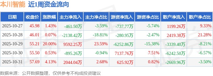 资金流向数据方面,本周本川智能主力资金合计净流入8141.12万元,游资资金合计净流入492.1万元,散户资金合计净流出8633.22万元。本周资金流向一览见下表: