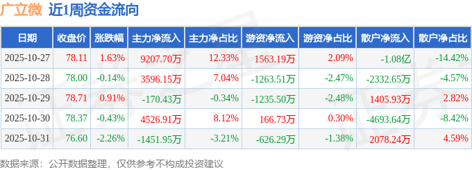 资金流向数据方面,本周广立微主力资金合计净流入1.57亿元,游资资金合计净流出1395.37万元,散户资金合计净流出1.43亿元。本周资金流向一览见下表: