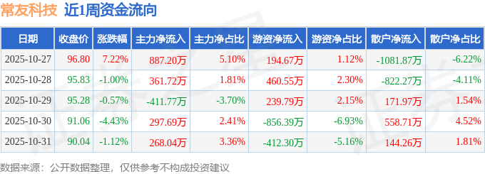 资金流向数据方面,本周常友科技主力资金合计净流入1402.88万元,游资资金合计净流出373.68万元,散户资金合计净流出1029.2万元。本周资金流向一览见下表: