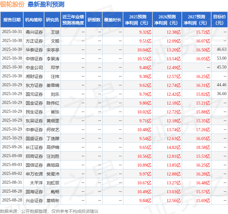 最新盈利预测明细如下: