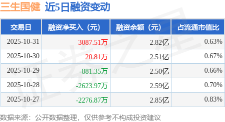 证券之星消息,10月31日,三生国健(688336)融资买入1.04亿元,融资偿还7360.59万元,融资净买入3087.51万元,融资余额2.82亿元,近20个交易日中有12个交易日出现融资净买入。