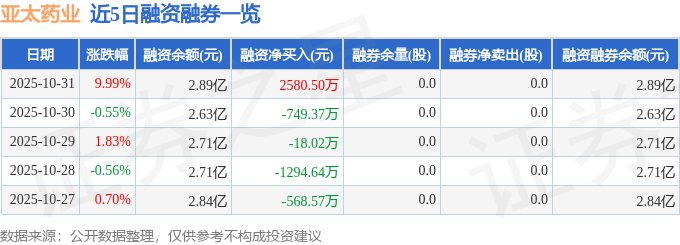 亚太药业融资融券信息显示,融资方面,当日融资买入8508.38万元,融资偿还5927.88万元,融资净买入2580.5万元。融券方面,融券卖出0.0股,融券偿还0.0股,融券余量0.0股,融券余额0.0万元。融资融券余额2.89亿元。