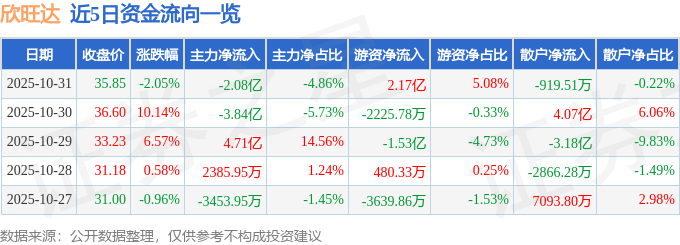 10月31日的资金流向数据方面,主力资金净流出2.08亿元,占总成交额4.86%,游资资金净流入2.17亿元,占总成交额5.08%,散户资金净流出919.51万元,占总成交额0.22%。