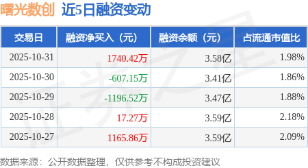 证券之星消息,10月31日,曙光数创(920808)融资买入3512.12万元,融资偿还1771.69万元,融资净买入1740.42万元,融资余额3.58亿元。