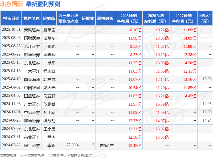证券之星消息,2025年10月31日北方国际(000065)发布公告称公司于2025年10月31日召开分析师会议,华夏久盈、长江证券、中信证券、国联证券、国泰海通证券、华泰证券、国盛证券、西部证券、广发证券、天风证券参与。