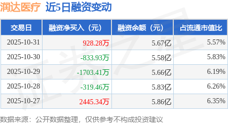 证券之星消息,10月31日,润达医疗(603108)融资买入9976.29万元,融资偿还9048.0万元,融资净买入928.28万元,融资余额5.67亿元。