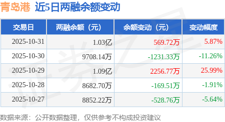证券之星消息,10月31日,青岛港(601298)融资买入2196.82万元,融资偿还1634.35万元,融资净买入562.47万元,融资余额1.03亿元。