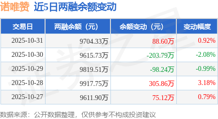 融资融券余额9704.33万元,较昨日上涨0.92%。