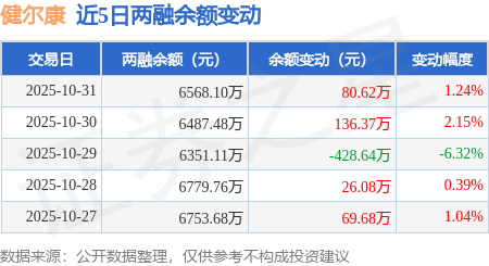 证券之星消息,10月31日,健尔康(603205)融资买入418.26万元,融资偿还337.64万元,融资净买入80.62万元,融资余额6567.82万元。