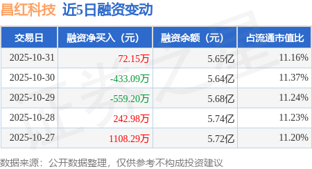 证券之星消息,10月31日,昌红科技(300151)融资买入1797.85万元,融资偿还1725.7万元,融资净买入72.15万元,融资余额5.65亿元。