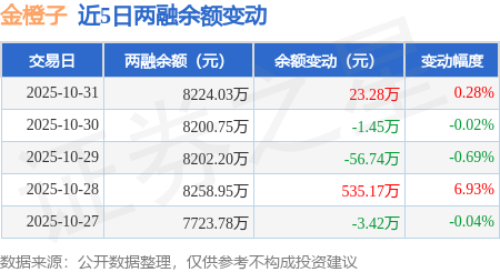 证券之星消息,10月31日,金橙子(688291)融资买入508.17万元,融资偿还484.89万元,融资净买入23.28万元,融资余额8224.03万元。