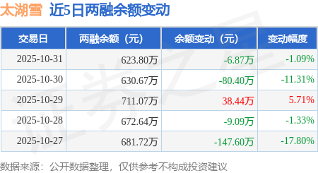 证券之星消息,10月31日,太湖雪(920262)融资买入143.12万元,融资偿还149.99万元,融资净卖出6.87万元,融资余额623.8万元。