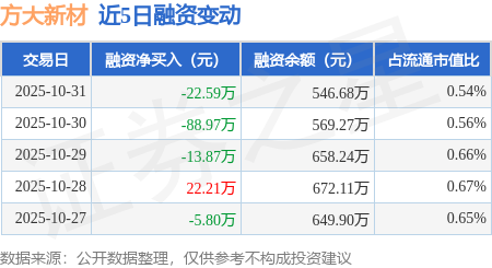 证券之星消息,10月31日,方大新材(920163)融资买入21.06万元,融资偿还43.66万元,融资净卖出22.59万元,融资余额546.68万元。
