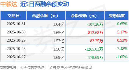 证券之星消息,10月31日,中毅达(600610)融资买入970.62万元,融资偿还1092.37万元,融资净卖出121.75万元,融资余额1.64亿元。