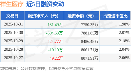 证券之星消息,10月31日,祥生医疗(688358)融资买入1025.98万元,融资偿还1157.47万元,融资净卖出131.49万元,融资余额7750.35万元,近20个交易日中有12个交易日出现融资净买入。