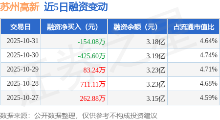 证券之星消息,10月31日,苏州高新(600736)融资买入1843.42万元,融资偿还1997.5万元,融资净卖出154.08万元,融资余额3.18亿元。