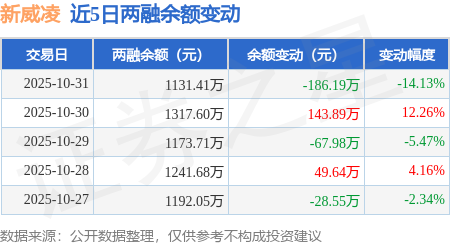 证券之星消息,10月31日,新威凌(920634)融资买入106.67万元,融资偿还292.86万元,融资净卖出186.19万元,融资余额1131.41万元。