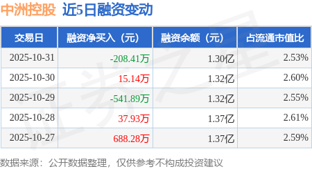 证券之星消息,10月31日,中洲控股(000042)融资买入296.8万元,融资偿还505.21万元,融资净卖出208.41万元,融资余额1.3亿元。