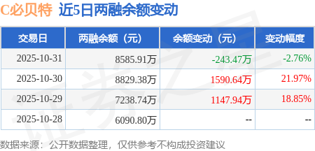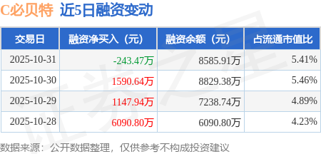 证券之星消息,10月31日,C必贝特(688759)融资买入6016.65万元,融资偿还6260.12万元,融资净卖出243.47万元,融资余额8585.91万元。