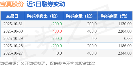 证券之星消息,10月31日,宝莫股份(002476)融资买入1557.56万元,融资偿还2206.81万元,融资净卖出649.25万元,融资余额2.92亿元,近20个交易日中有12个交易日出现融资净买入。