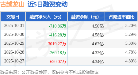 证券之星消息,10月31日,古越龙山(600059)融资买入1352.01万元,融资偿还2062.87万元,融资净卖出710.86万元,融资余额4.5亿元。