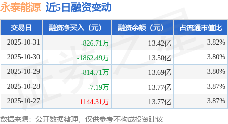 证券之星消息,10月31日,永泰能源(600157)融资买入1.91亿元,融资偿还2.0亿元,融资净卖出826.71万元,融资余额13.42亿元。