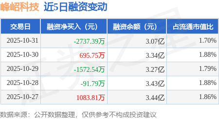 证券之星消息,10月31日,峰岹科技(688279)融资买入769.86万元,融资偿还3507.25万元,融资净卖出2737.39万元,融资余额3.07亿元。