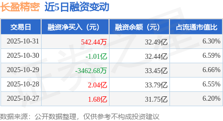 证券之星消息,10月31日,长盈精密(300115)融资买入7.65亿元,融资偿还7.6亿元,融资净买入542.44万元,融资余额32.49亿元,近20个交易日中有11个交易日出现融资净买入。