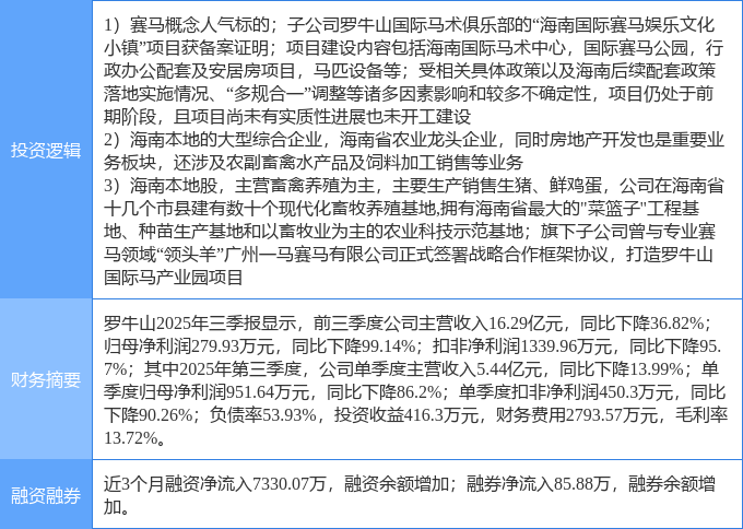 该股为海南概念,海南自由贸易港,赛马概念热股,当日海南概念概念上涨4.82%,海南自由贸易港概念上涨4.19%,赛马概念上涨3.26%。