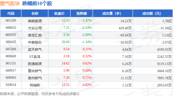 从资金流向上来看,当日燃气板块主力资金净流出6182.37万元,游资资金净流入4412.46万元,散户资金净流入1768.27万元。燃气板块个股资金流向见下表: