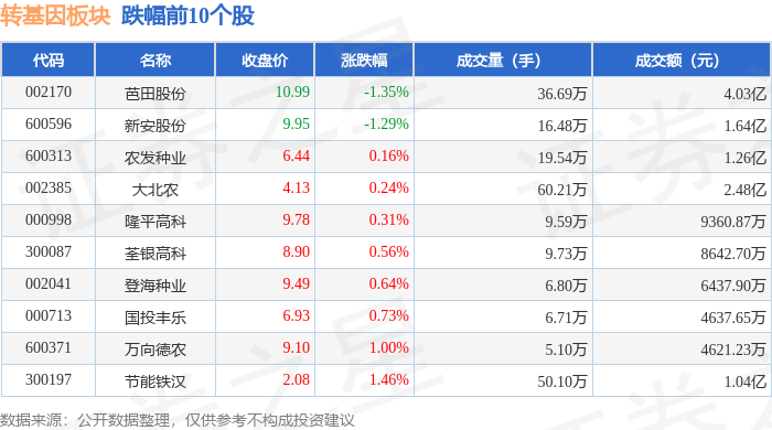 证券之星消息,11月3日转基因板块较上一交易日上涨0.44%,诺 普 信领涨。当日上证指数报收于3976.52,上涨0.55%。深证成指报收于13404.06,上涨0.19%。转基因板块个股涨跌见下表: