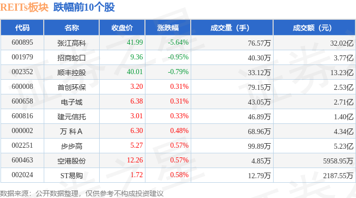 证券之星消息,11月3日REITs板块较上一交易日下跌0.97%,张江高科领跌。当日上证指数报收于3976.52,上涨0.55%。深证成指报收于13404.06,上涨0.19%。REITs板块个股涨跌见下表: