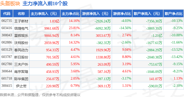 从资金流向上来看,当日头盔板块主力资金净流出5.3亿元,游资资金净流入2.47亿元,散户资金净流入2.83亿元。头盔板块个股资金流向见下表: