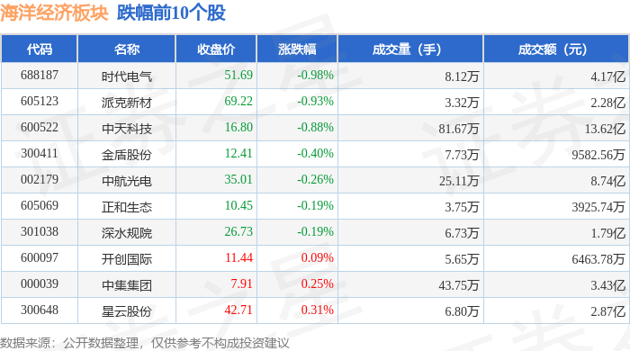 从资金流向上来看,当日海洋经济板块主力资金净流入2.07亿元,游资资金净流出1.02亿元,散户资金净流出1.05亿元。海洋经济板块个股资金流向见下表:
