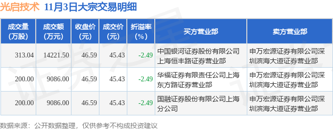 证券之星消息,11月3日光启技术发生大宗交易,交易数据如下: